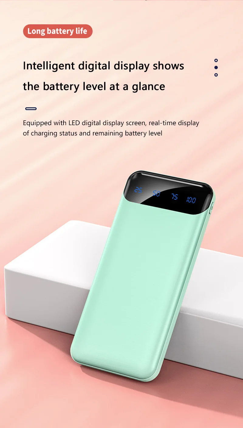 Capacidad: Disponible en 10000 mAh, 50000 mAhy100000opciones de mAh