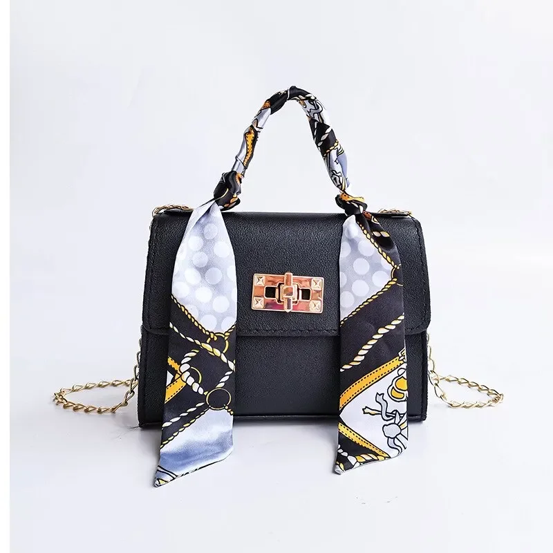 2025 Women’s Mini Crossbody Bag – Solid Color Handbag with Silk Scarf & Chain Accent