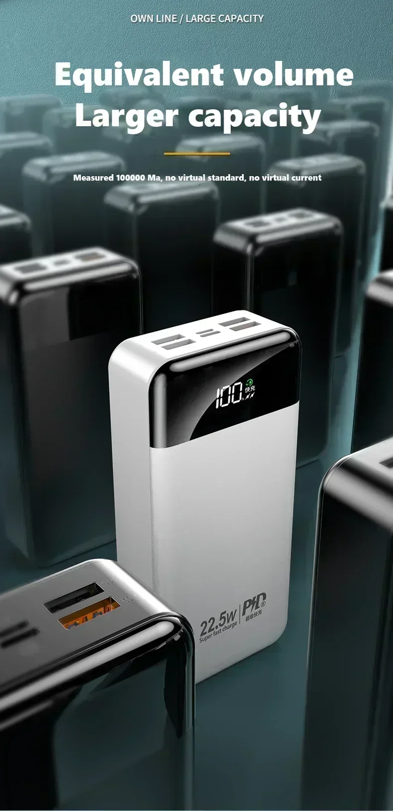 Power up in style with the SU 100000mAh power bank, featuring 22.5W PD fast charging Portable Battery Pack. Designed for iPhone, Xiaomi, Huawei, and more, it’s the ultimate portable battery pack for those on the move.