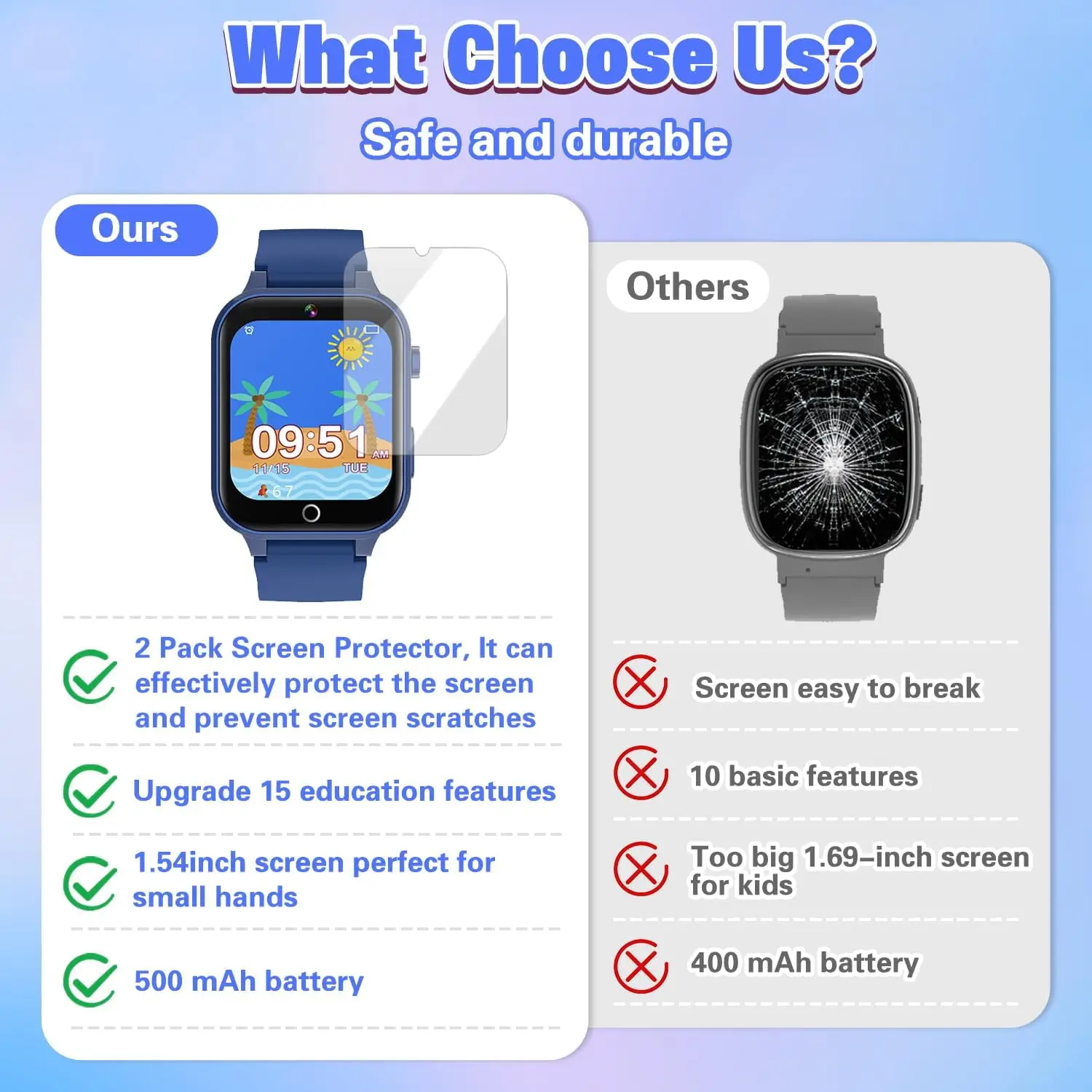 New 1.54 “HD touch screen design, Rich Game & Function including 26 games, camera, music player, video, recording, alarm clock, calculator, flashlight which can bring convenience and fun to children in their lives.