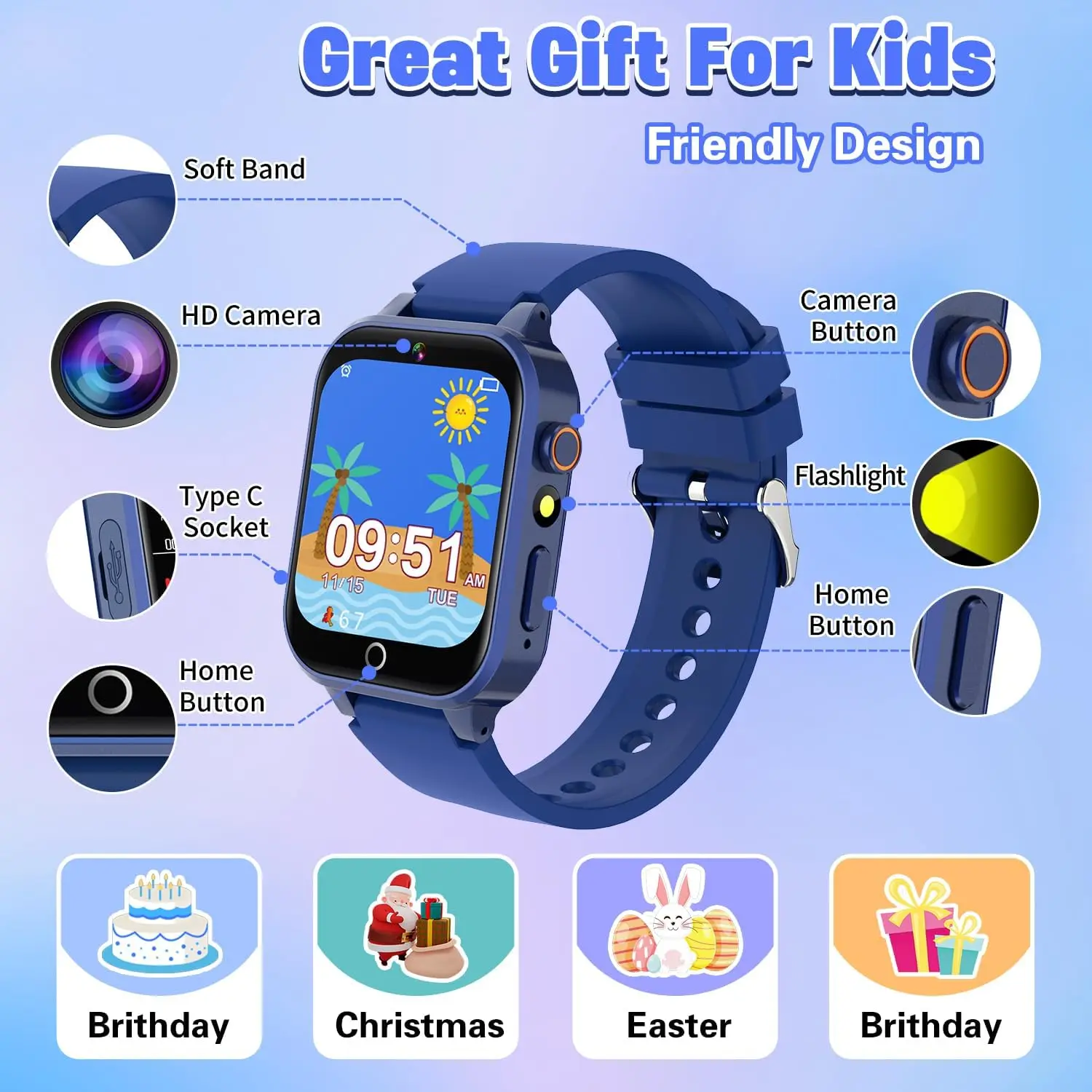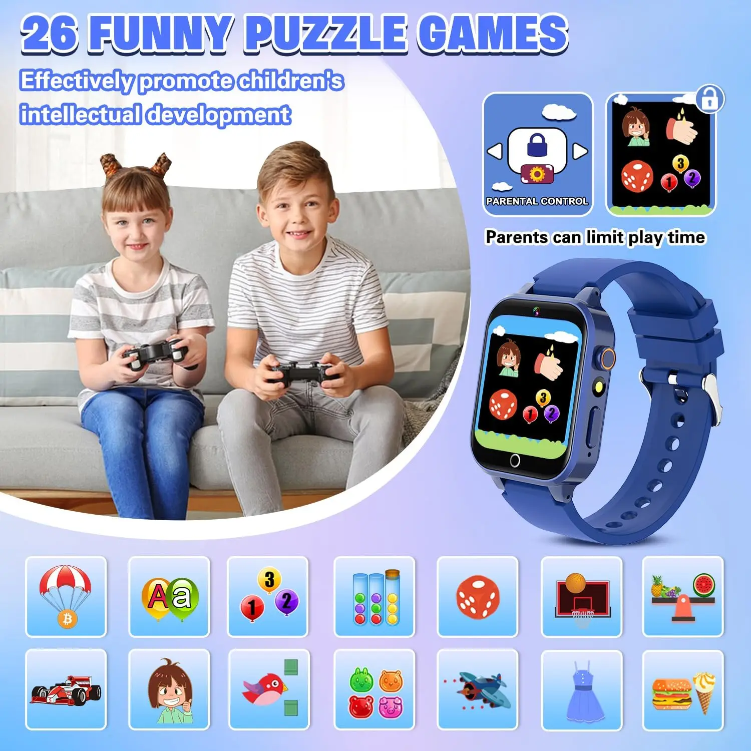 This kids game smartwatch 2025 features fun games, music, pedometer, and recording options—an ideal birthday gift for boys and girls.