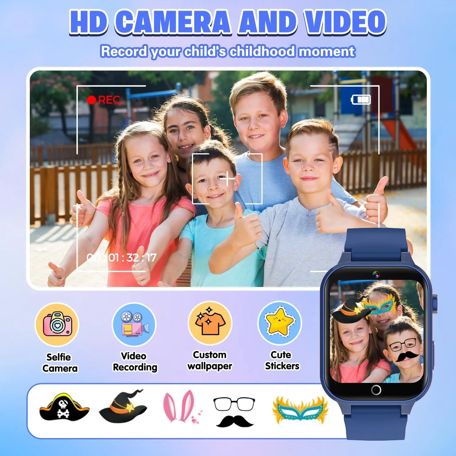 We designed 30,000 pixel camera for the watch, kids can take videos, selfies and photos to capture their happy moments with their family or friends. They can also take photos with decorative stickers and borders to make photos more interesting.